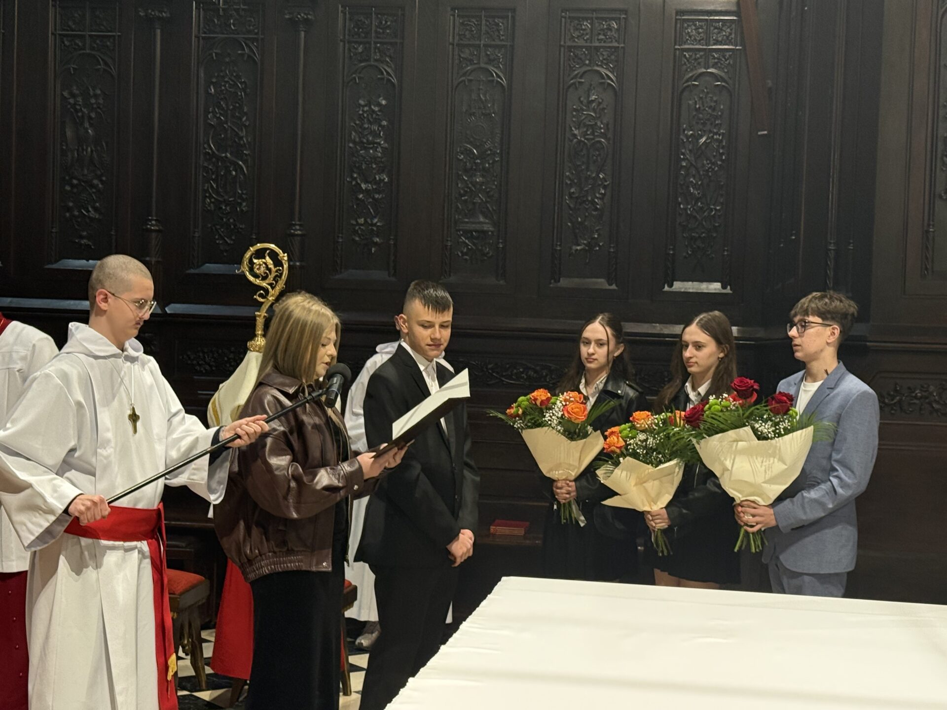 Sakramentu bierzmowania udzielił ksiądz biskup Stanisław Jamrozek. Jego obecność podkreśla apostolski wymiar tego sakramentu oraz jedność bierzmowanych z Kościołem.